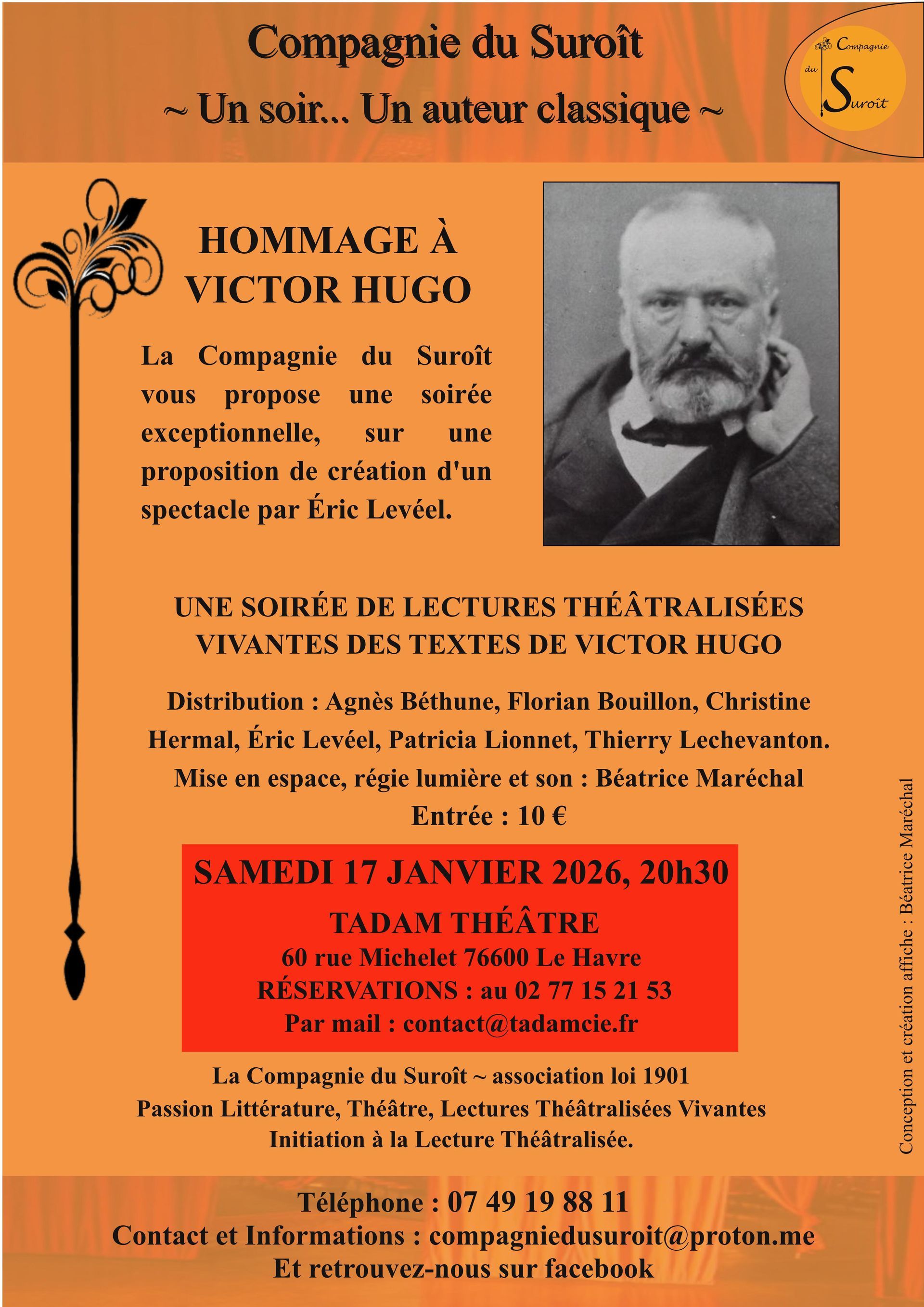La Compagnie du Suroît vous propose une soirée exceptionnelle : son spectacle de Lectures Théâtralisées Vivantes des textes de Victor Hugo !