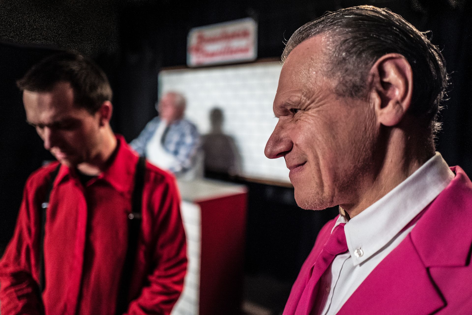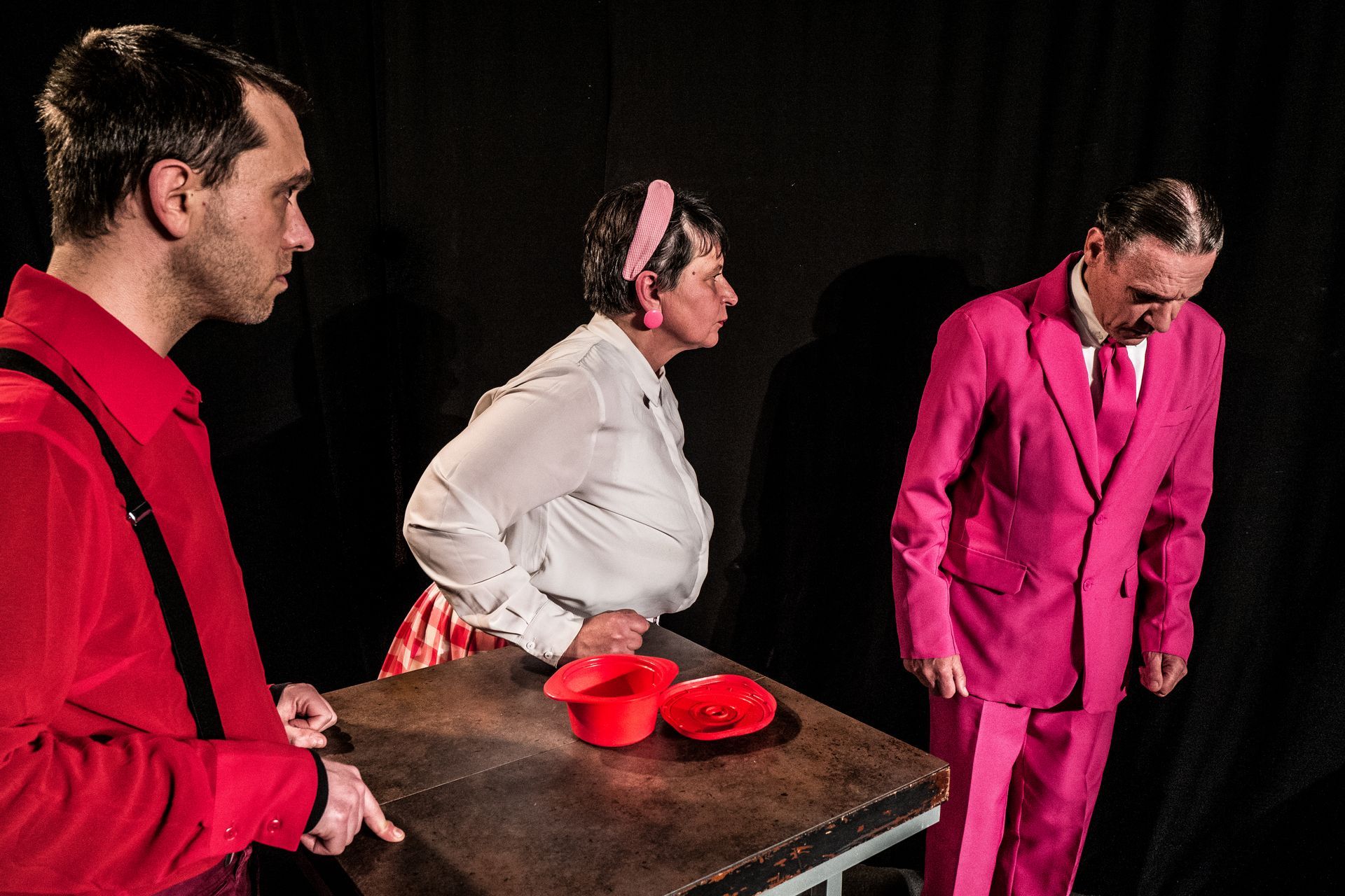 Le public est invité à pénétrer l’intimité des répétitions d’un spectacle qui en est encore aux stades du balbutiement... Entre le comédien principal qui doit interpréter pour la première fois le rôle d’un Claude, (et croyez bien que les Claude, c’est pas facile à interpréter) ; René qui doit dire les didascalies alors même qu’il est masqué par une colonne (qu’est-ce qu’elle fait là, la colonne ?) et les douleurs lombaires du metteur en scène, on découvre ici le processus de création, dans un fou rire quasi permanent !